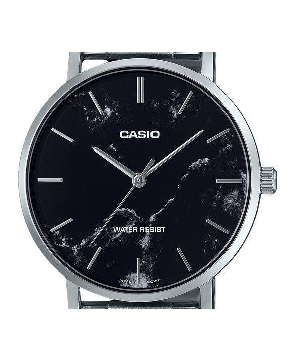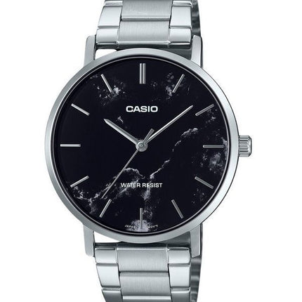 Montre analogique Casio Standard en acier inoxydable avec cadran noir inspiré du marbre pour homme MTP-VT01DM-1A