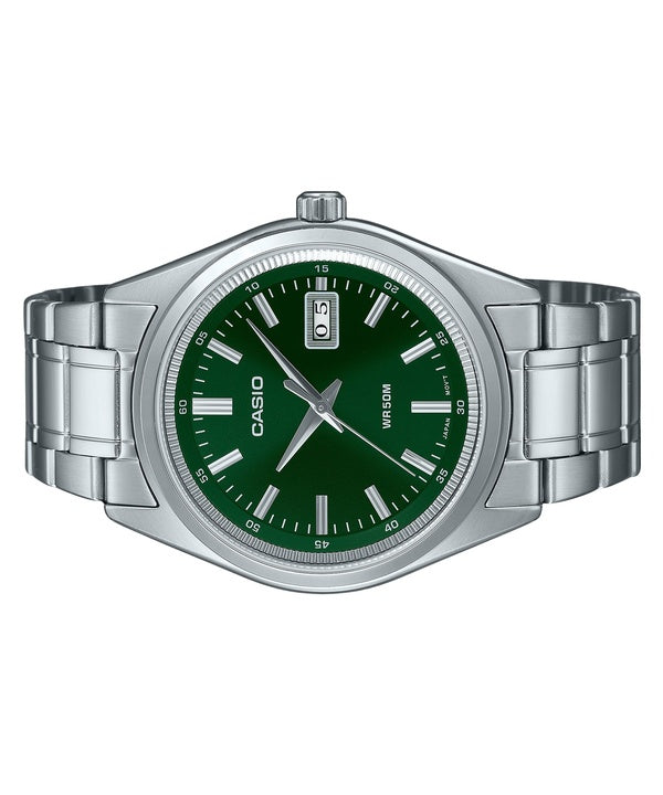 Montre analogique Casio Standard en acier inoxydable avec cadran vert et quartz MTP-B180D-3AV pour homme