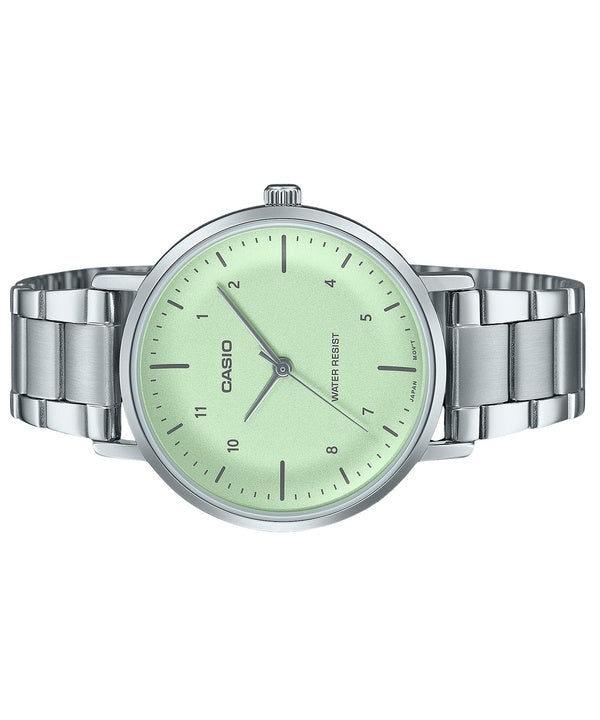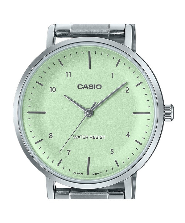 Montre analogique Casio Standard en acier inoxydable avec cadran vert menthe et quartz LTP-VT03D-3B pour femme