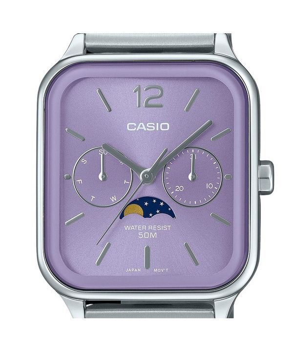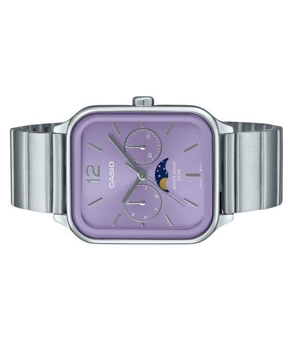 Montre analogique Casio Standard Moon Phase en acier inoxydable avec cadran violet et quartz MTP-M305D-6AV pour homme
