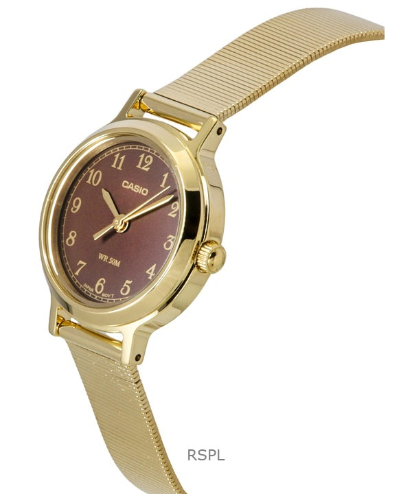 Montre analogique Casio Standard pour femme, acier inoxydable doré, cadran marron, quartz LTP-B170G-5BV
