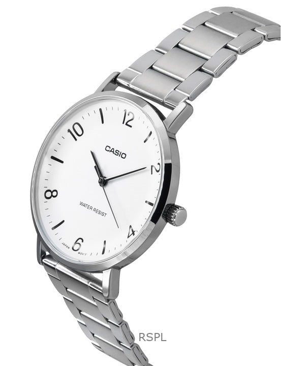 Montre analogique Casio Standard pour homme, acier inoxydable, cadran blanc, quartz, MTP-VT03D-7B