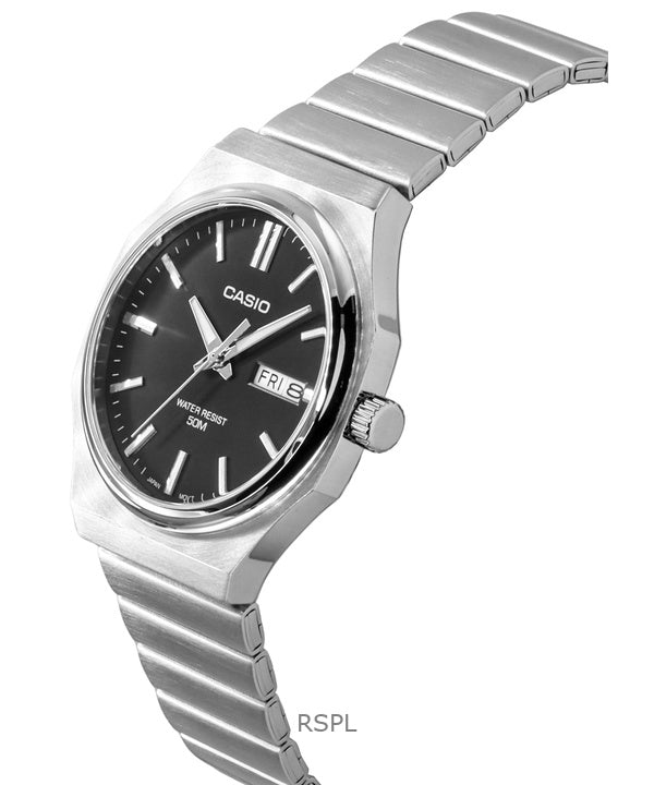 Montre analogique Casio Standard pour homme, acier inoxydable, cadran noir, quartz, MTP-E735D-1AV