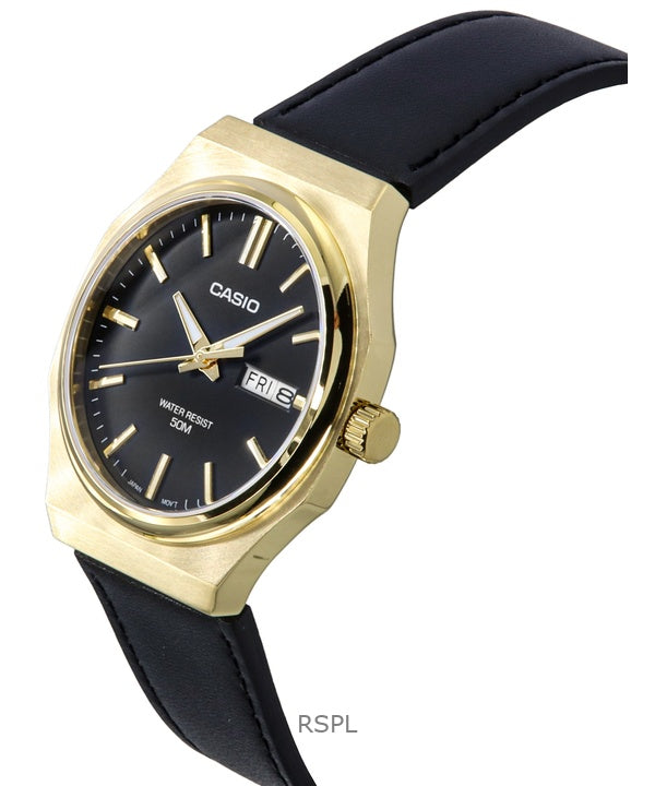 Montre analogique Casio Standard pour homme, bracelet en cuir, cadran noir, quartz, MTP-E735GL-1AV