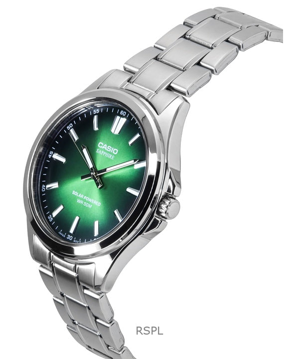 Montre analogique Casio Standard pour homme, cadran vert, acier inoxydable, solaire, MTS-RS100D-3AV