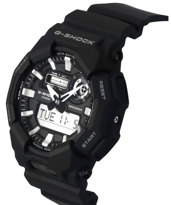Montre analogique numérique Casio G-Shock pour homme avec bracelet en résine biosourcée, cadran noir, quartz, GA-010-1A, 200 m