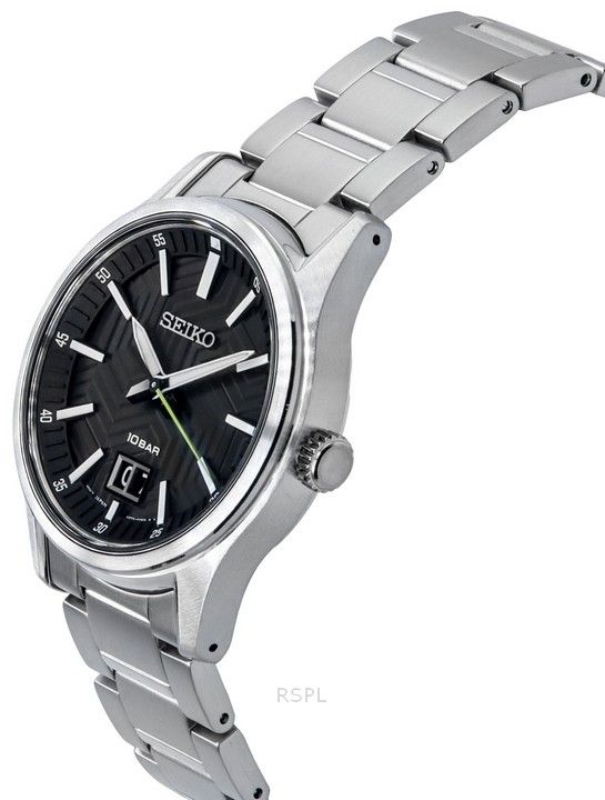 Montre analogique Seiko en acier inoxydable avec cadran noir et quartz SUR535P1 100M pour homme