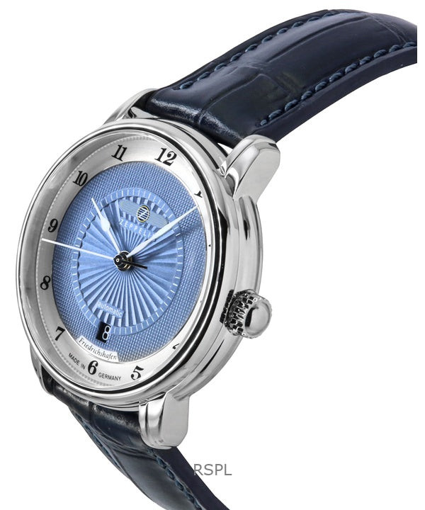Montre automatique pour femme Zeppelin Friedrichshafen 85563, bracelet en cuir, cadran bleu