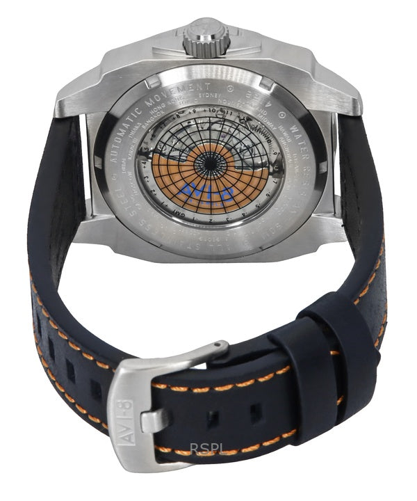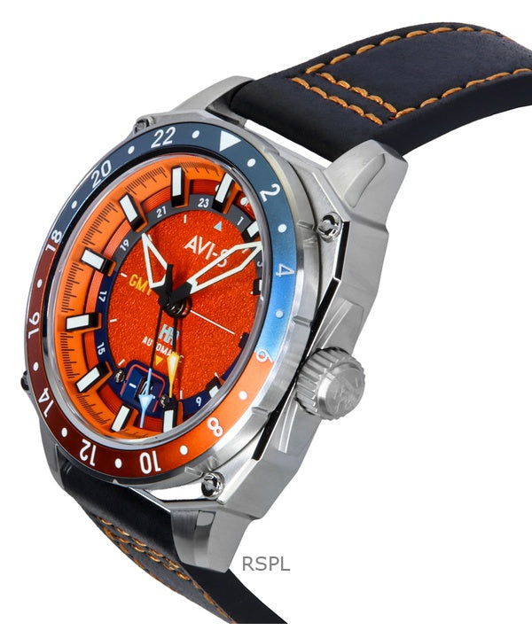 Montre automatique pour homme AVI-8 Hawker Hunter Atlas GMT, bracelet en cuir rouge orangé, cadran orange, AV-4122-06