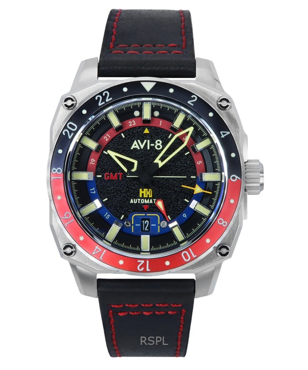 Montre automatique pour homme AVI-8 Hawker Hunter Atlas GMT Devil, cadran noir, AV-4122-01