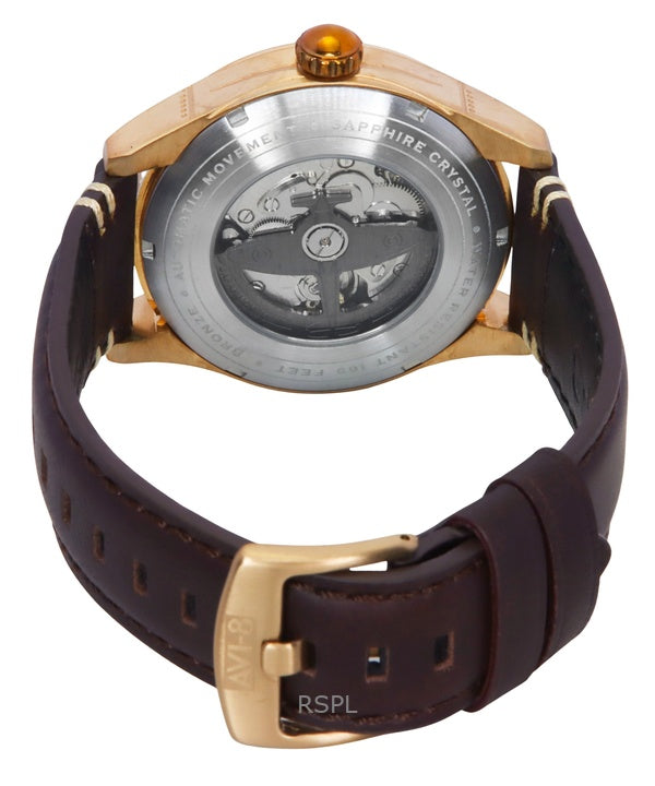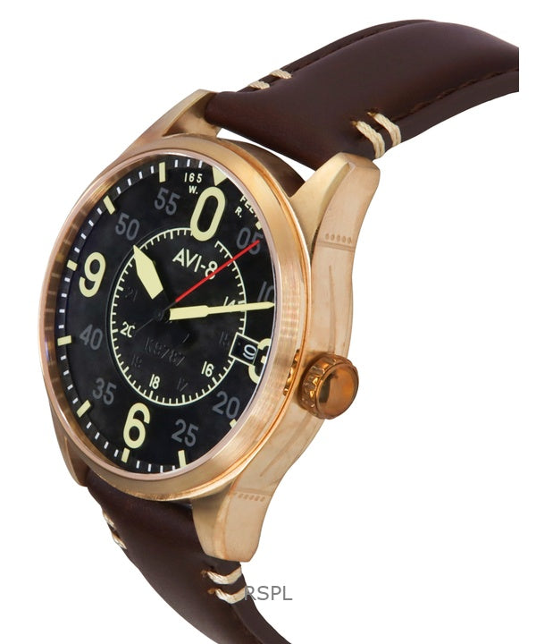 Montre automatique pour homme AVI-8 Spitfire Smith, bracelet en cuir marron, cadran noir, AV-4090-06