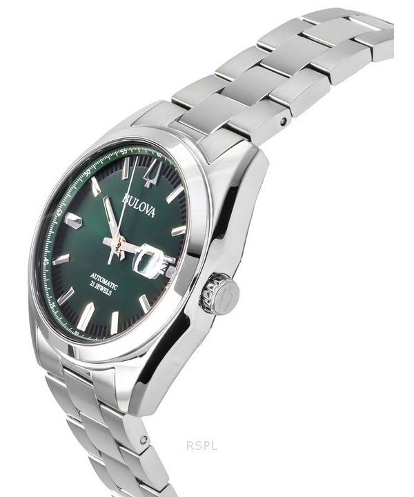 Montre automatique pour homme Bulova Surveyor en acier inoxydable avec cadran vert 96B429