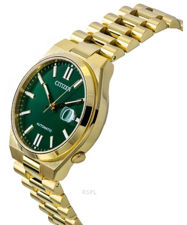 Montre automatique pour homme Citizen Tsuyosa en acier inoxydable doré avec cadran vert NJ0152-51X