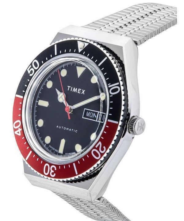 Montre automatique pour homme Timex Q-Series M79 en acier inoxydable avec cadran noir TW2U83400