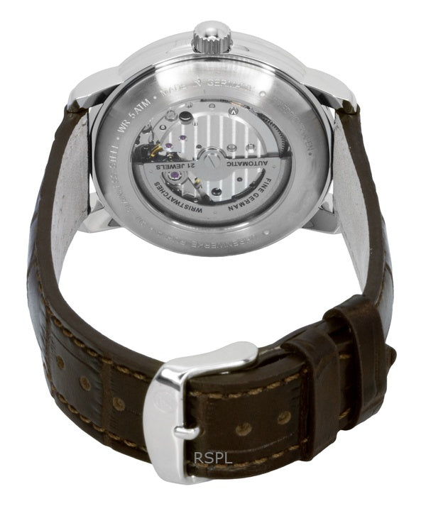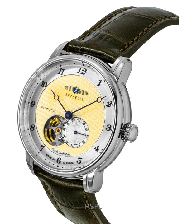 Montre automatique pour homme Zeppelin Friedrichshafe 85665, bracelet en cuir marron, cadran doré et cœur ouvert