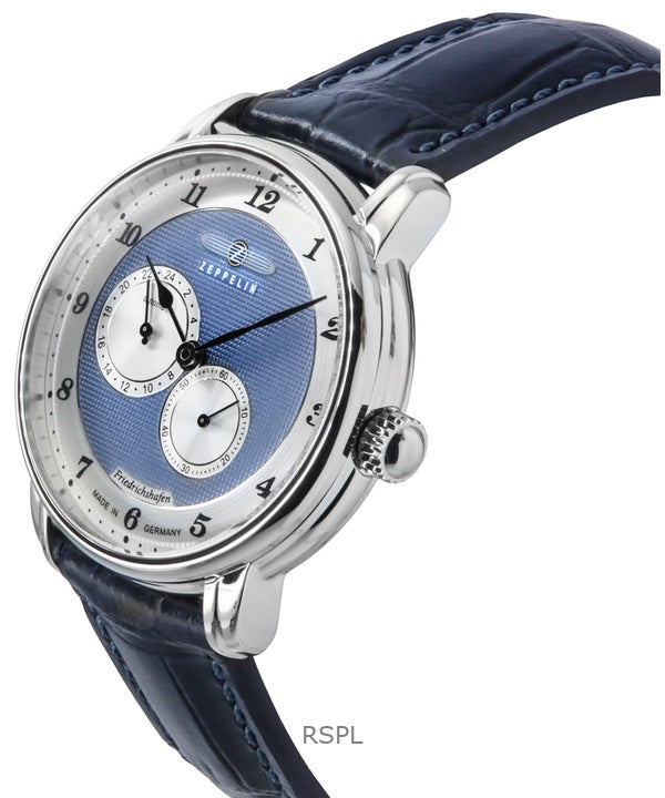 Montre automatique pour homme Zeppelin Friedrichshafen avec bracelet en cuir et cadran bleu 85683