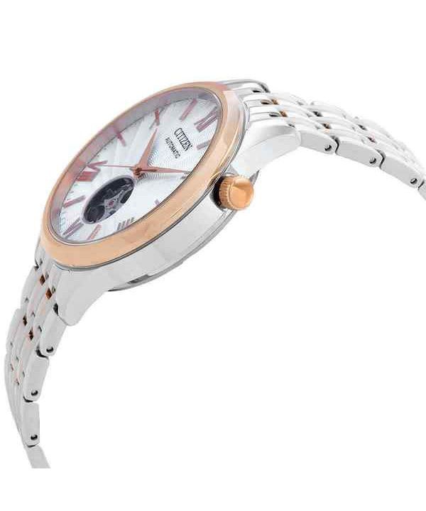 Montre automatique pour hommes Citizen NH9136-88A à cœur ouvert en acier inoxydable bicolore avec cadran blanc
