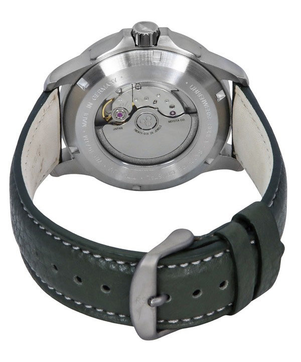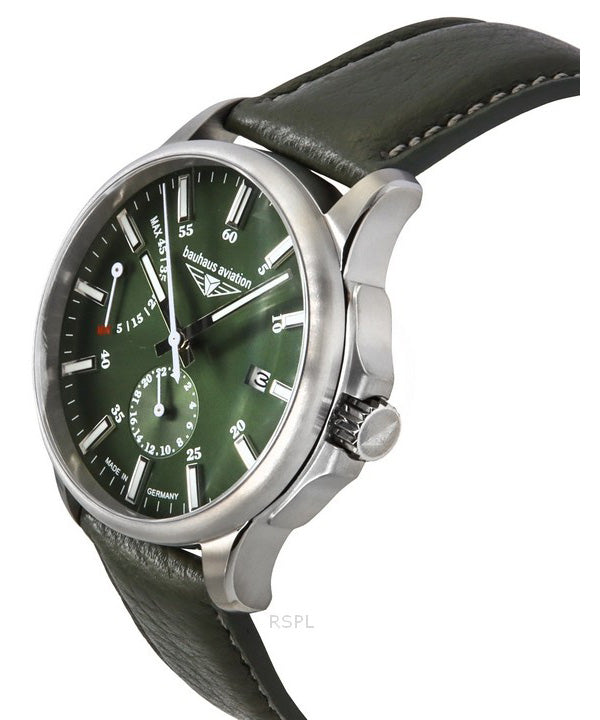 Montre Bauhaus Aviation pour homme avec bracelet en cuir vert et cadran vert foncé, automatique, 28604 100M