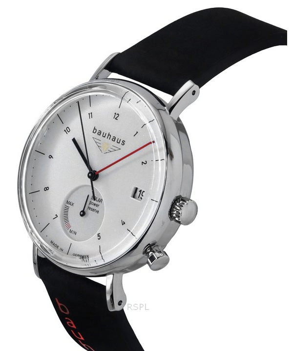 Montre Bauhaus Classic pour homme avec bracelet en cuir noir et cadran blanc Solar 21121