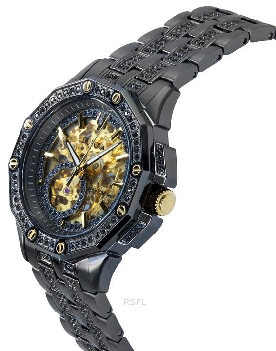 Montre Bulova Octava Crystal Accents en acier inoxydable avec cadran doré et automatique 98A293 pour homme