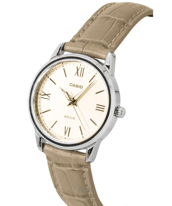 Montre Casio analogique pour femme, bracelet en cuir, cadran doré, mouvement à quartz LTP-1303LL-7AV
