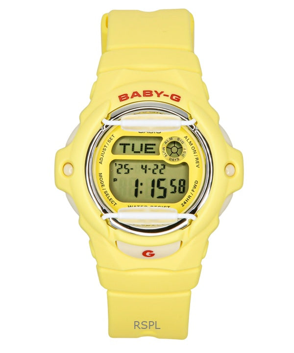 Montre Casio Baby-G Digitale à quartz pour femme, bracelet en résine jaune, BG-169CH-9, 200 m