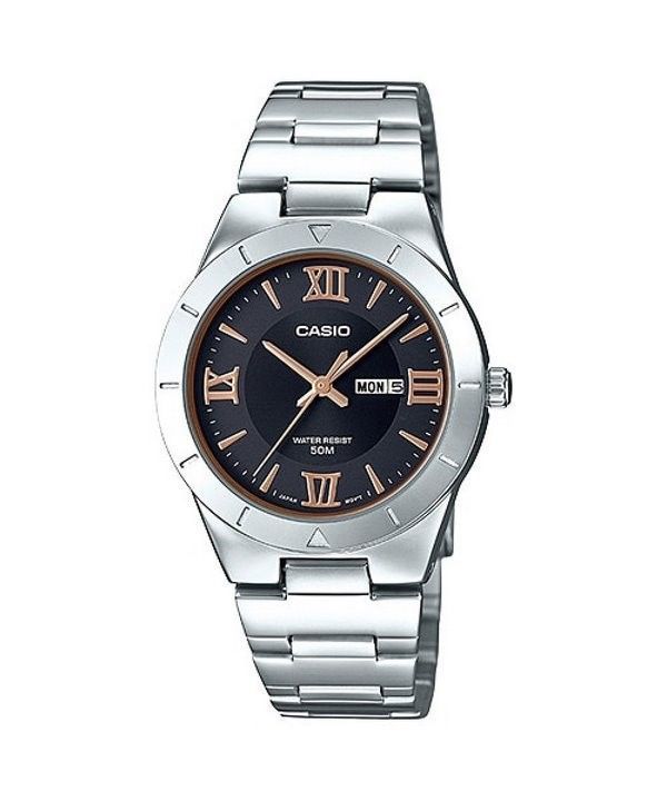 Montre Casio Enticer analogique en acier inoxydable avec cadran noir et quartz LTP-1410D-1A pour femme