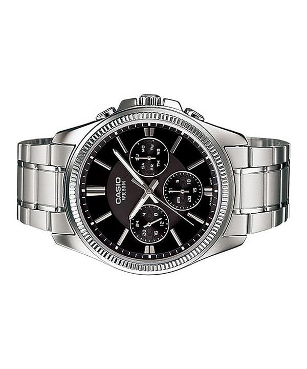 Montre Casio Enticer analogique en acier inoxydable avec cadran noir et quartz MTP-1375D-1AV pour homme