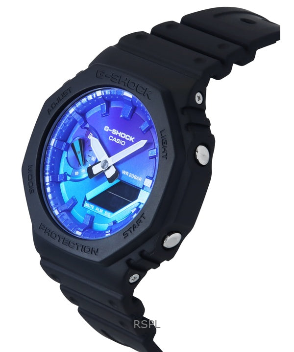 Montre Casio G-Shock analogique numérique à quartz pour homme, bracelet en résine biosourcée, cadran bleu, GA-2100FL-1A, 200 m