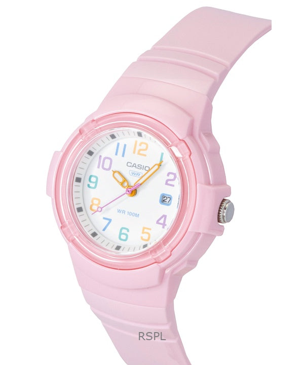 Montre Casio LX-800H-4AV pour femme, analogique, bracelet en résine biosourcée, cadran blanc, mouvement à quartz, étanche à 100 m