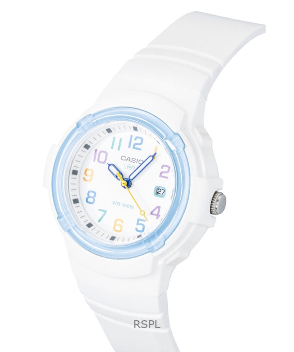 Montre Casio LX-800H-7A2V pour femme, analogique, bracelet en résine biosourcée, cadran blanc, mouvement à quartz, étanche à 100 m