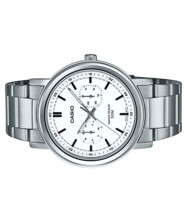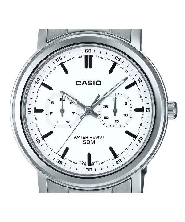 Montre Casio Standard analogique en acier inoxydable avec cadran blanc et quartz MTP-E335D-7EV pour homme