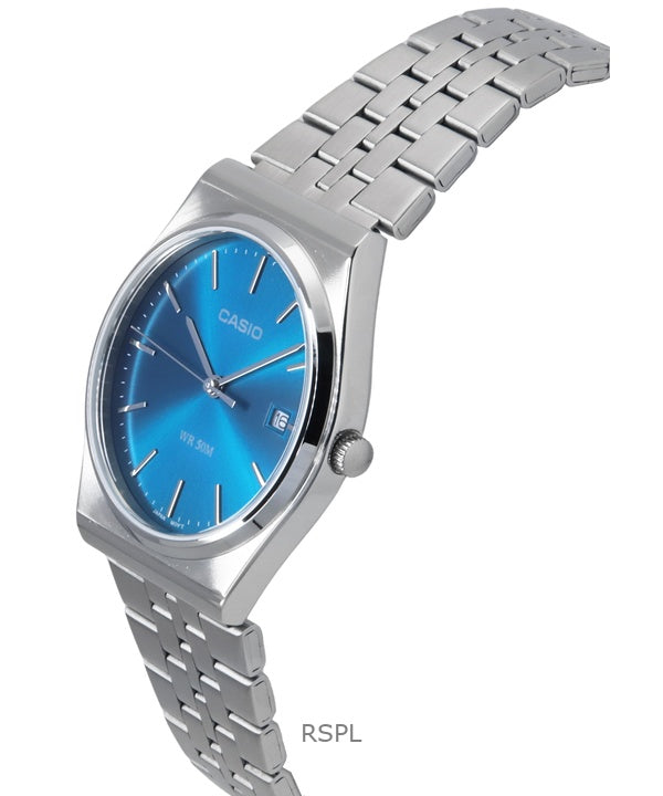 Montre Casio Standard analogique en acier inoxydable avec cadran bleu et quartz MTP-B145D-2A2 pour homme