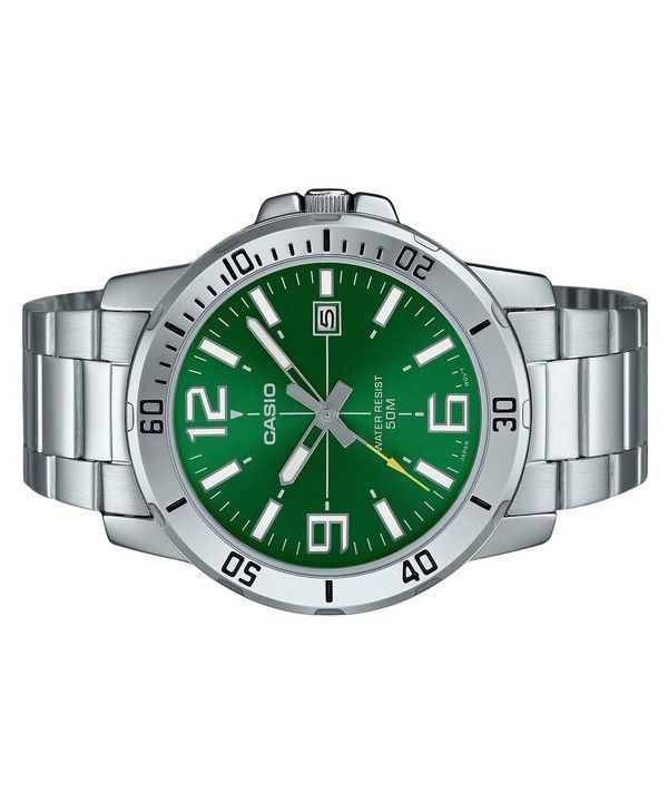 Montre Casio Standard analogique en acier inoxydable avec cadran vert et quartz MTP-VD01D-3BV pour homme