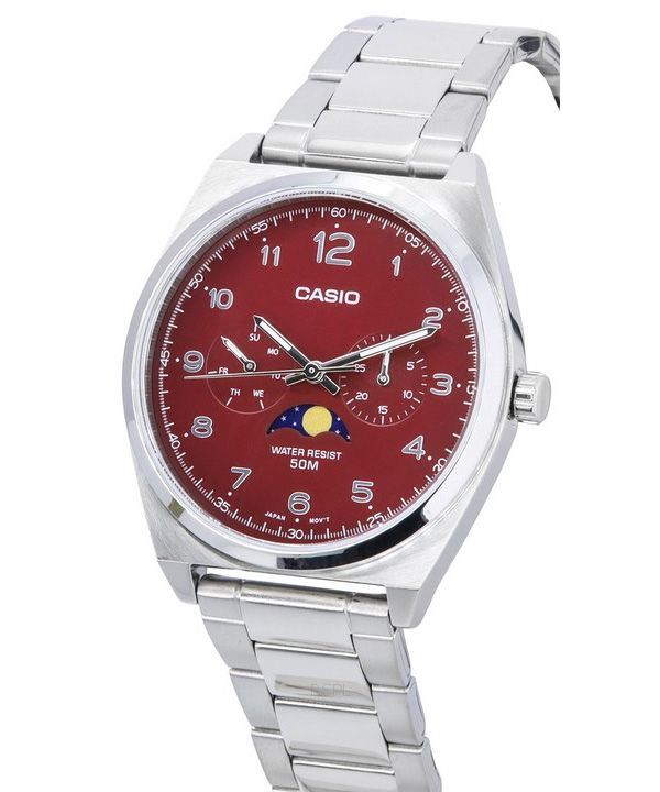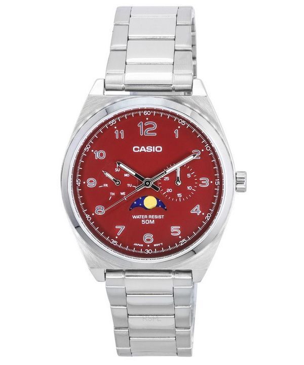 Montre Casio Standard analogique en acier inoxydable avec phase de lune et cadran rouge à quartz MTP-M300D-4A pour ho