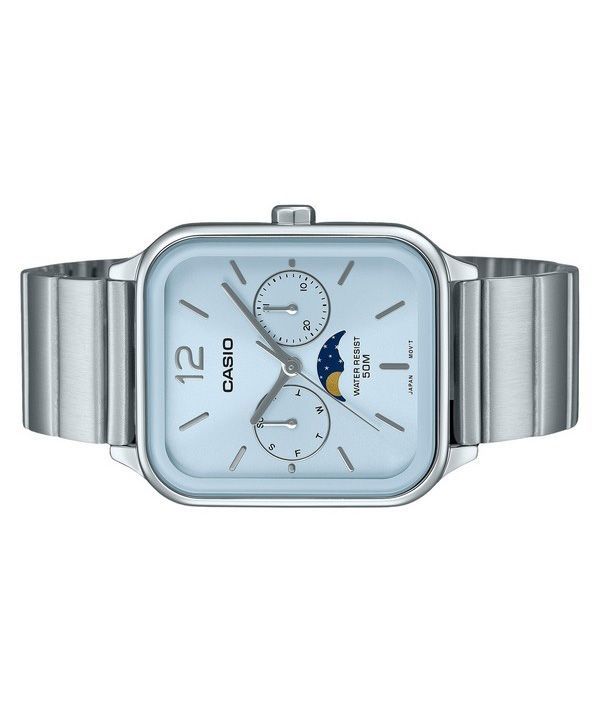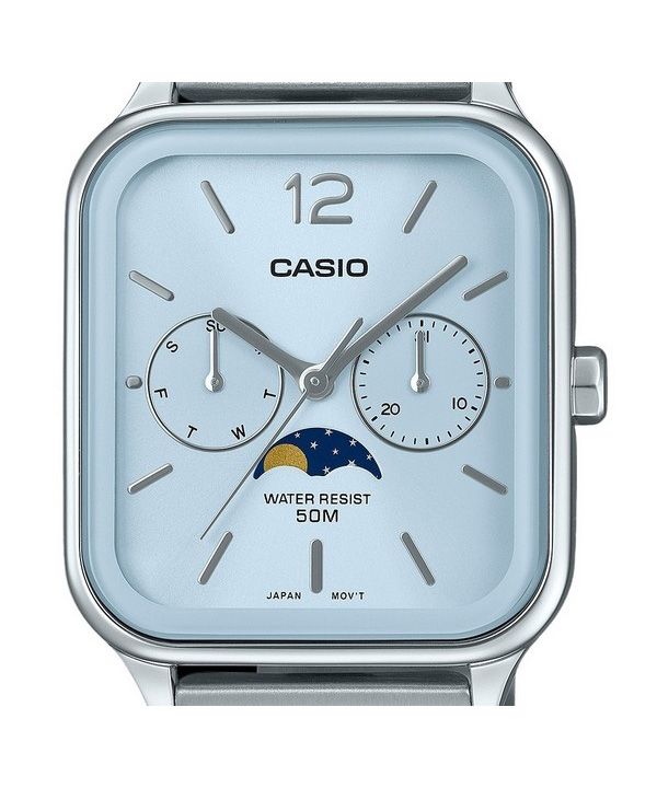 Montre Casio Standard analogique phase de lune en acier inoxydable cadran bleu bébé à quartz MTP-M305D-2AV pour homme