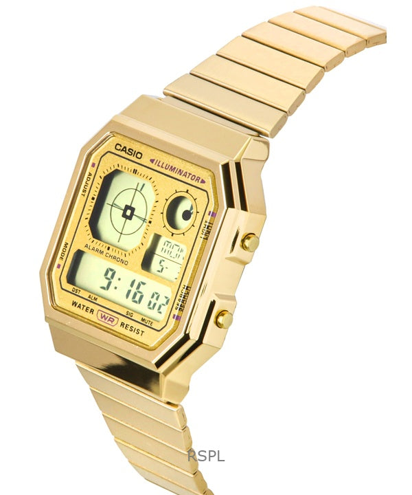 Montre Casio Vintage Digital Quartz A130WEG-9A unisexe en acier inoxydable