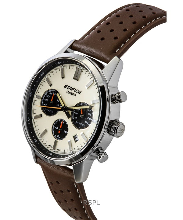 Montre chronographe analogique Casio Edifice pour homme, bracelet en cuir, cadran crème, quartz, EFR-575L-7A, 100 m