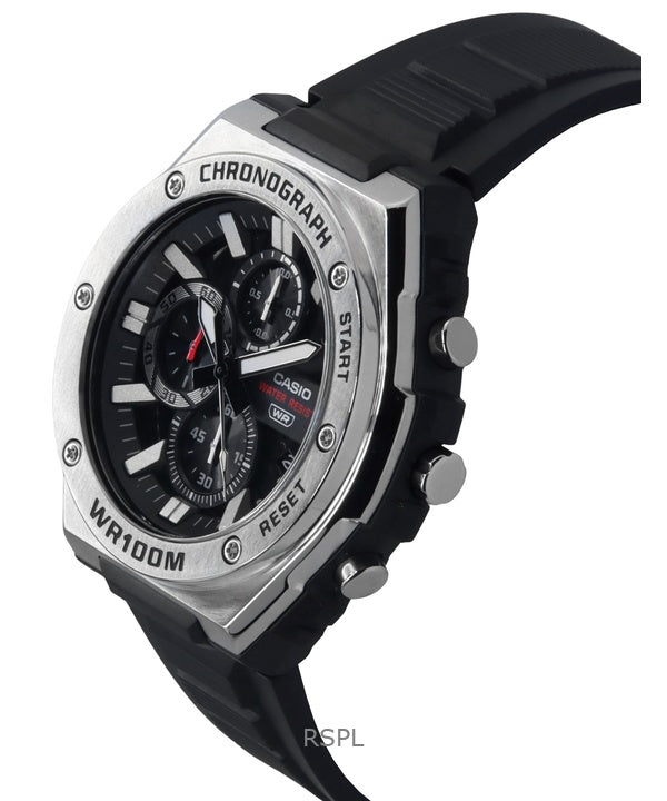 Montre chronographe analogique standard Casio pour homme avec bracelet en résine et cadran noir, quartz MWA-300H-1AV 100 m
