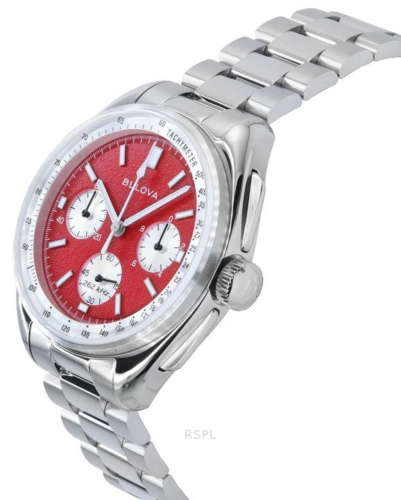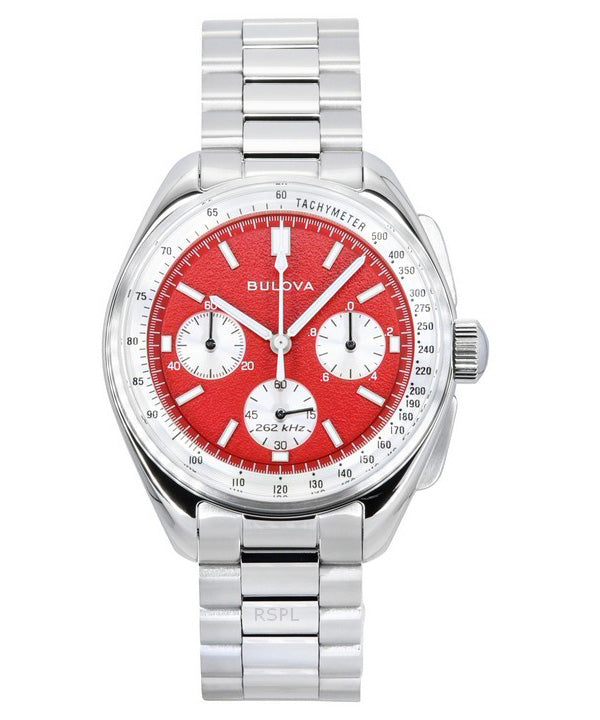 Montre chronographe Bulova Lunar Pilot en acier inoxydable avec cadran rouge et quartz 96K115 pour homme