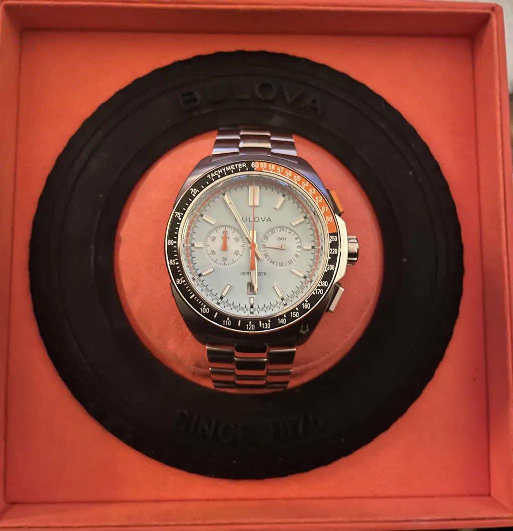 Montre chronographe Bulova Racer en acier inoxydable avec cadran bleu et quartz 98B432 100M pour homme