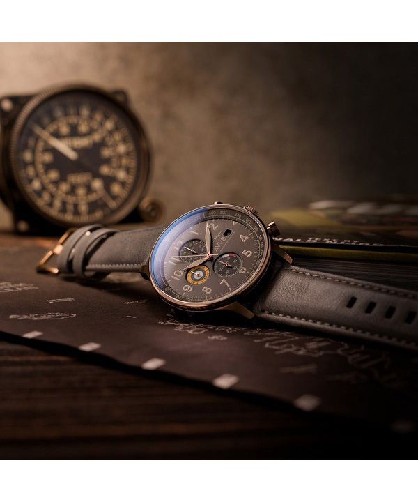 Montre chronographe classique Hawker Hurricane AVI-8 à quartz avec cadran gris AV-4011-0P pour homme