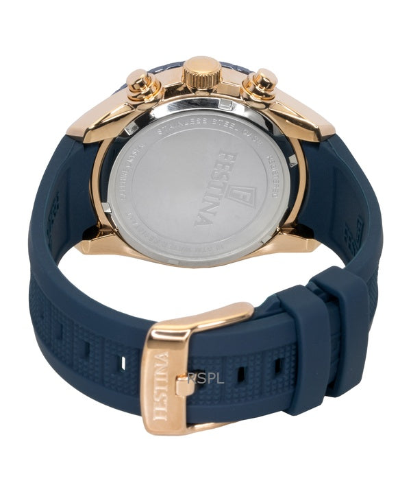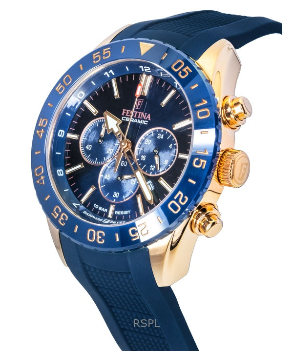 Montre chronographe Festina Ceramic pour homme, bracelet en caoutchouc, cadran bleu, quartz, F20516-1, 100 m