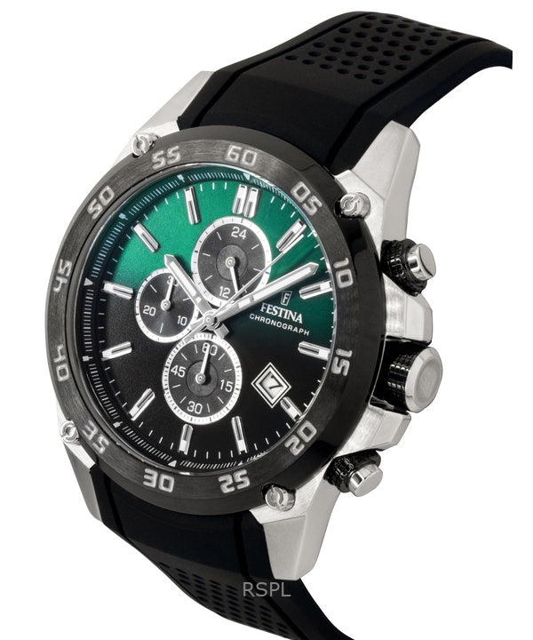 Montre chronographe Festina The Originals pour homme, bracelet en caoutchouc, cadran vert, quartz, F20330-B, 100 m