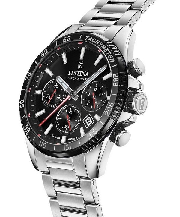 Montre chronographe Festina Timeless en acier inoxydable avec cadran noir et quartz F20560-6 100M pour homme