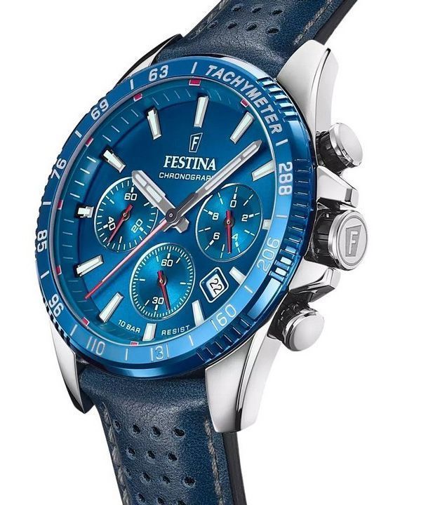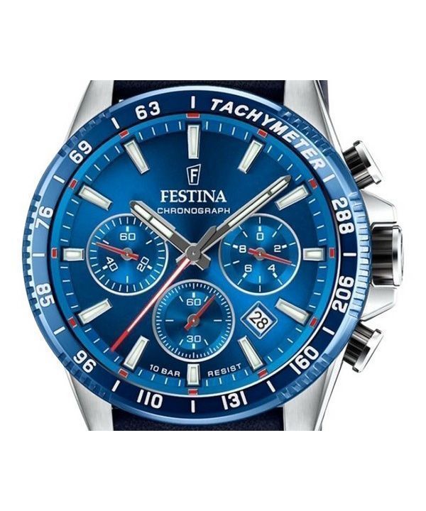 Montre chronographe Festina Timeless pour homme avec bracelet en cuir et cadran bleu à quartz F20561-3 100 m