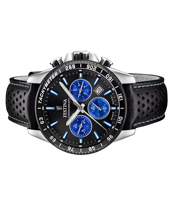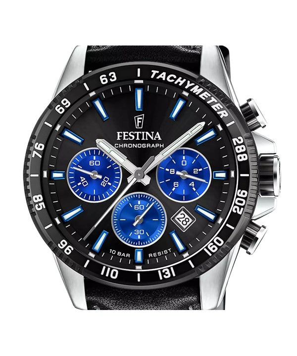 Montre chronographe Festina Timeless pour homme avec bracelet en cuir et cadran noir F20561-6 100 m