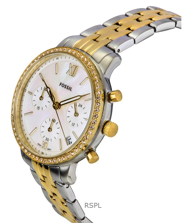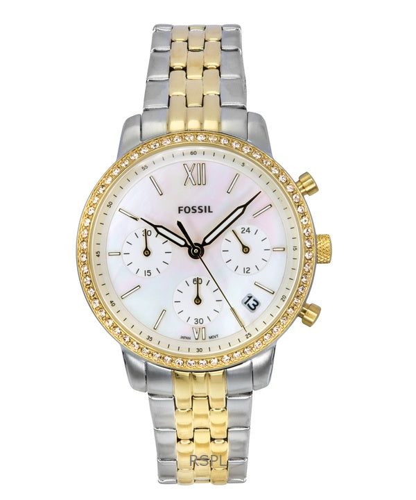 Montre chronographe Fossil Neutra pour femme en acier inoxydable bicolore avec cadran en nacre blanche ES5216