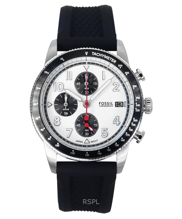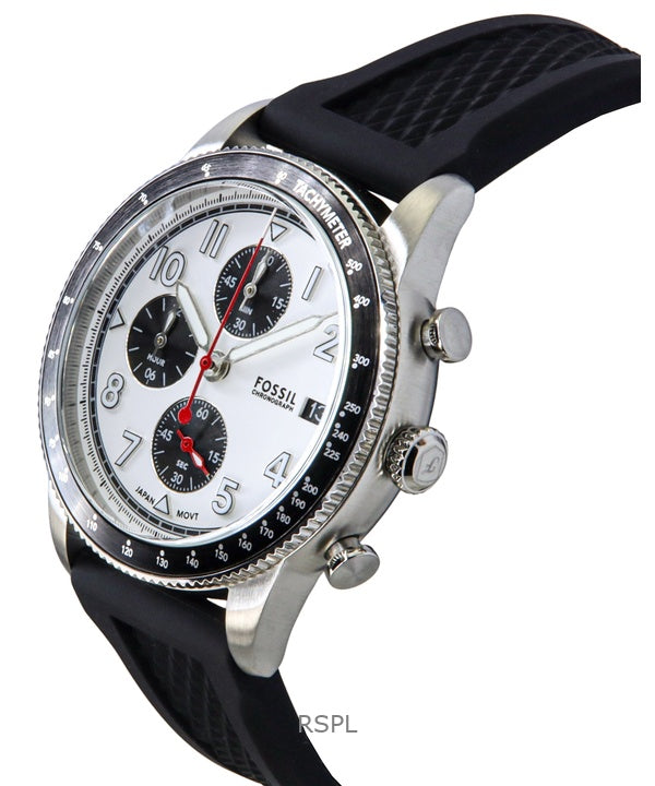 Montre chronographe Fossil Sport Tourer pour homme, bracelet en cuir, cadran blanc, quartz, FS6087