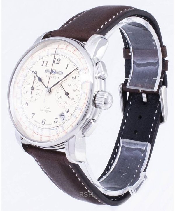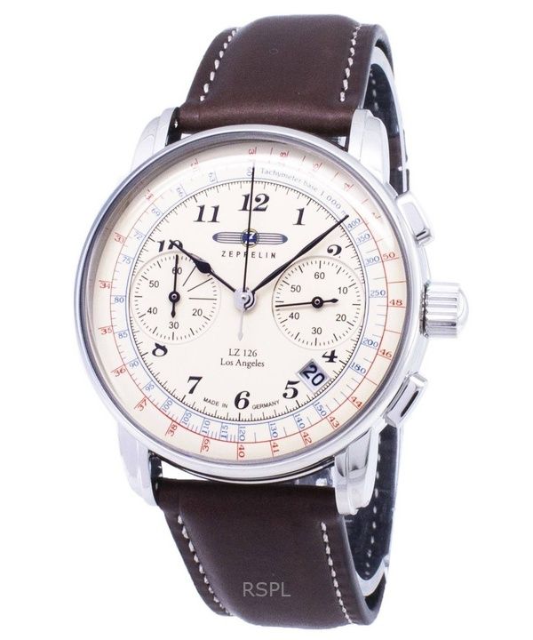 Montre chronographe Zeppelin LZ126 pour homme, cadran beige, quartz, fabriquée en Touteemagne, 76145, remise à neuf